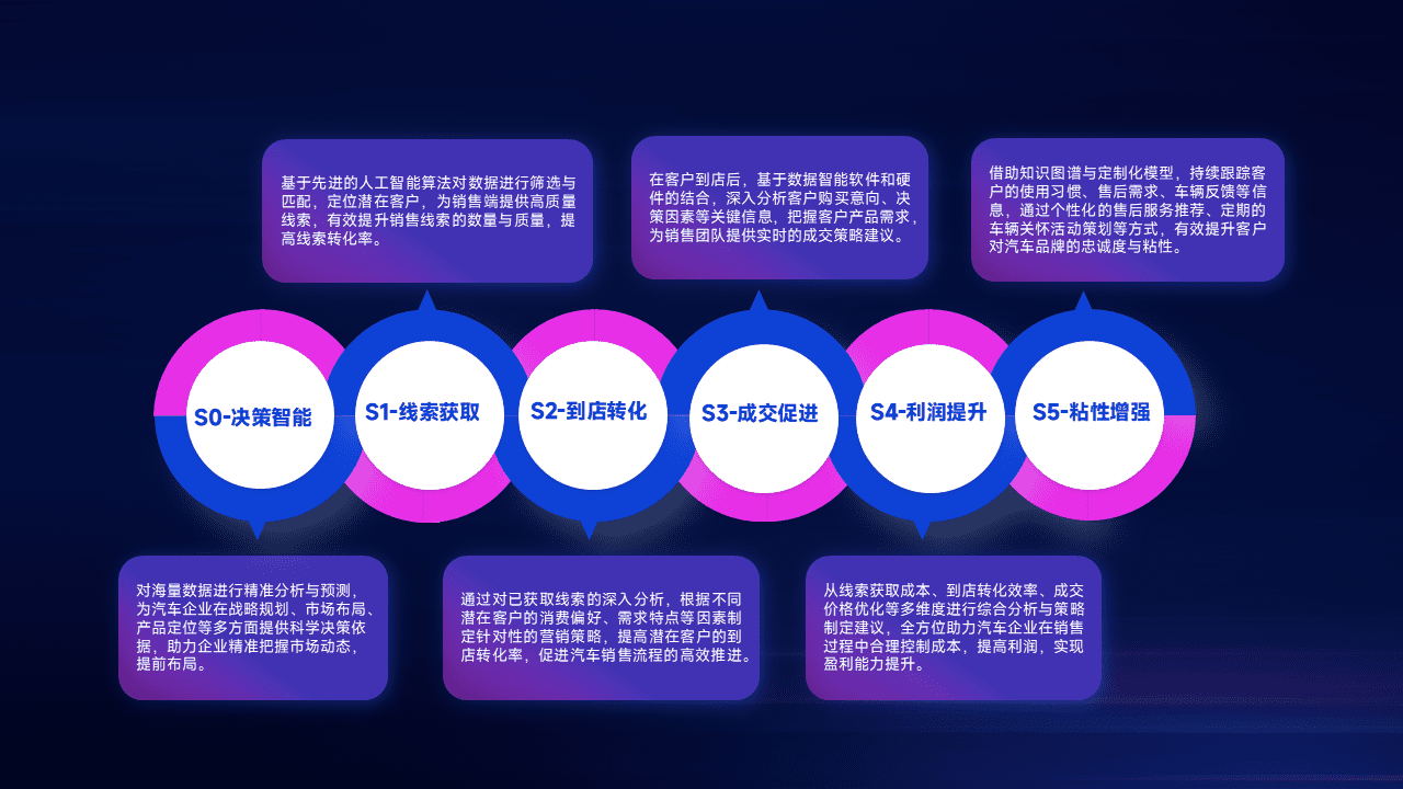 通过拓宽潜在客户来源、、优化线索分配并提高到店转化率,,,,以增强销售效率。。。同时,,利用线索数据不断优化分析模型,,,,有效提升转化率,,,,扩大营销影响力。。。。